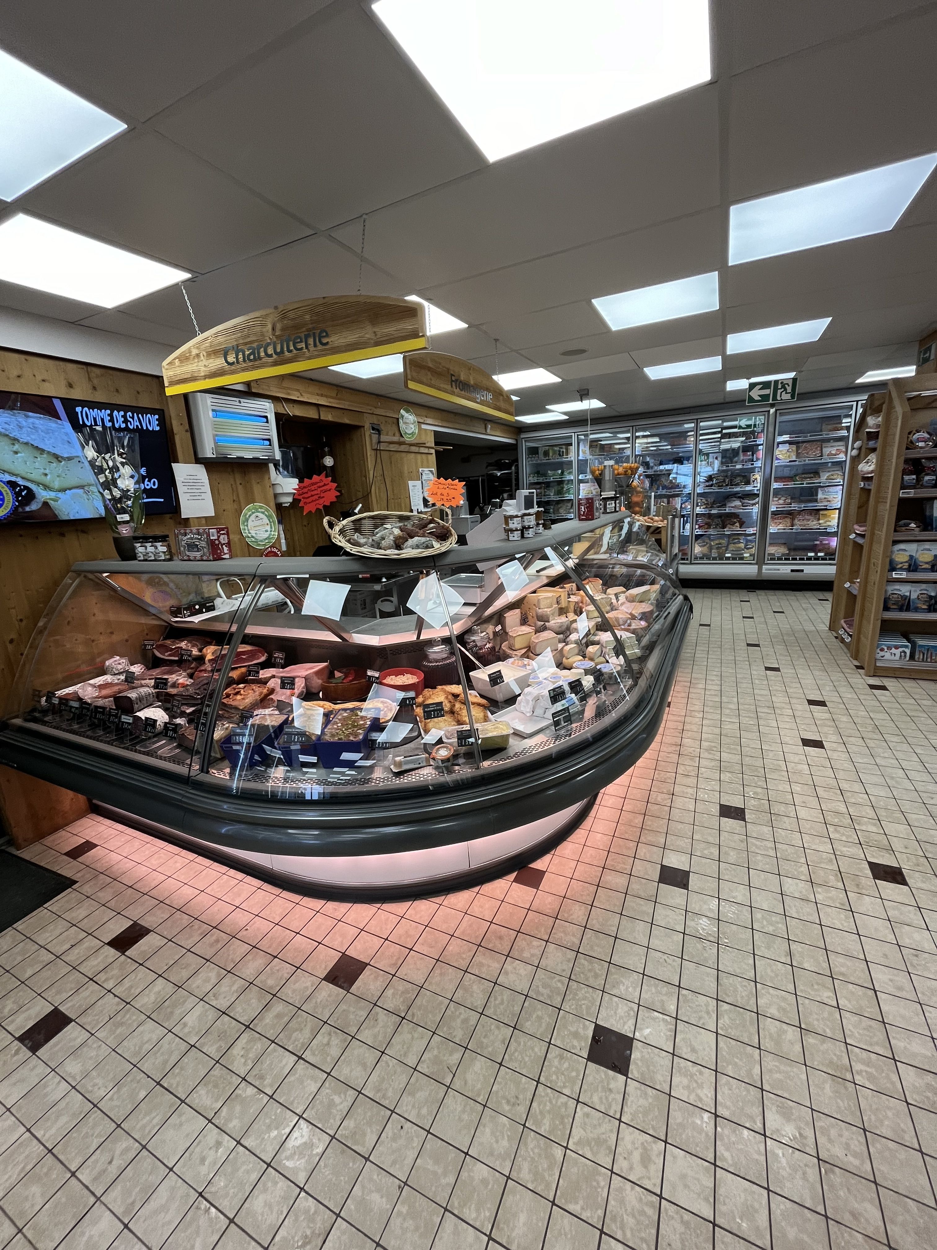 Ce magasin, doté d’une belle surface de vente a un atout indéniable : Un rayon coupe charcuterie/fromage bien enrichi. Pour Benoît, c’est un rayon « coup de cœur » qui permet d’avoir un contact privilégié avec les clients. La mise en valeur de produits de qualités est une priorité : on retrouve ainsi plus de 60 % des fromages qui sont locaux ; abondance, tomme, chèvre, brebis, beurre, crème fraîche... Côté charcuterie, saucissons, jambons secs et jambons blancs font également partie de productions locales. Les 40 % restants sont des produits régionaux, « au plus loin, quelques produits viennent de Lyon » s’exclame Benoît !