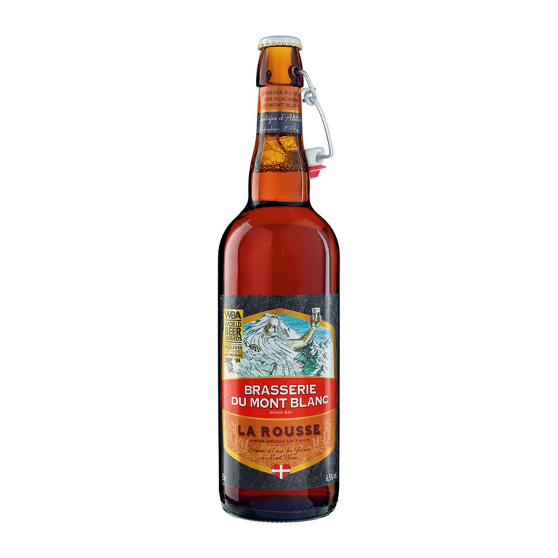 Eau des glaciers du Mont-Blanc, MALT D ORGE, MALT DE BLE, AVOINE, maïs, houblons, épices floraux.